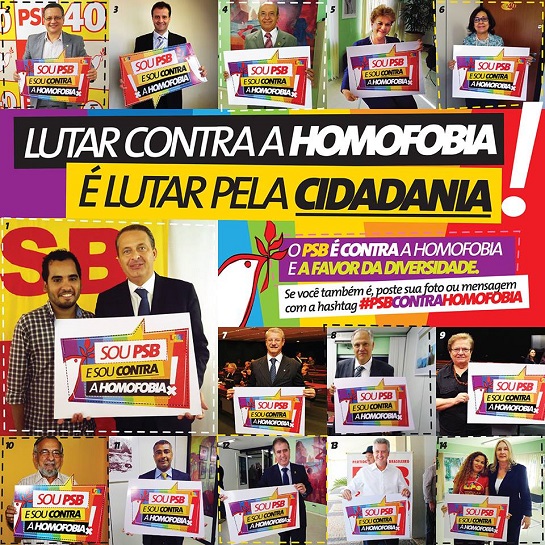 Como forma de lembrar o 17 de maio, Dia Mundial contra a Homofobia, o PSB lançou campanha com participação de importantes nomes do partido. O maior destaque fica com o presidenciável Eduardo Campos, que posou com placa da ação, na qual se lê: Sou PSB e sou contra a homofobia.